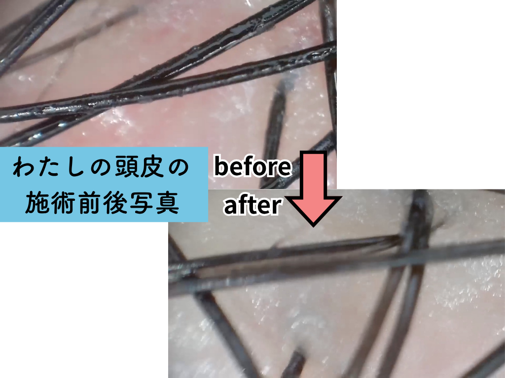 実際にマイクロスコープでbefore afterを写真に撮ってみました。